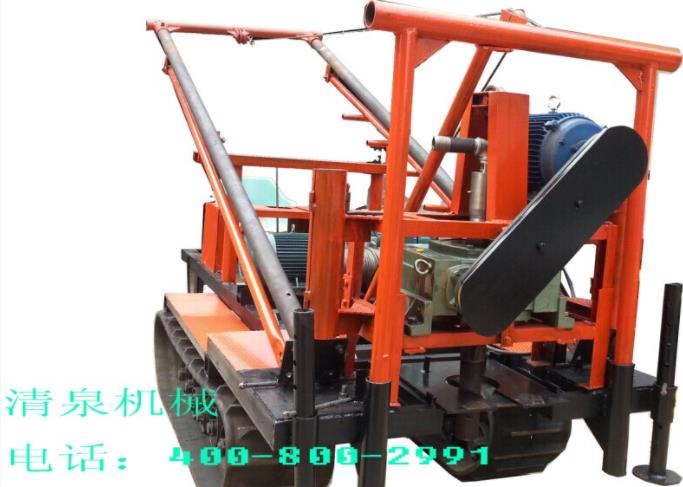 履帶式鉆機(jī)包括主機(jī)、泵站、操縱臺(tái)、行走履帶四大部分。該鉆機(jī)是一種分體式的履帶鉆機(jī),由泵車和鉆機(jī)組成,每一節(jié)由一根高壓軟管相連,結(jié)構(gòu)緊湊,油路系統(tǒng)高度一體化,方便了日常的維修保養(yǎng)。該系統(tǒng)操作簡單,全液控操作,具有工作效率高、勞動(dòng)強(qiáng)度低、操作簡單、能滿足各種工作條件下的角度要求。